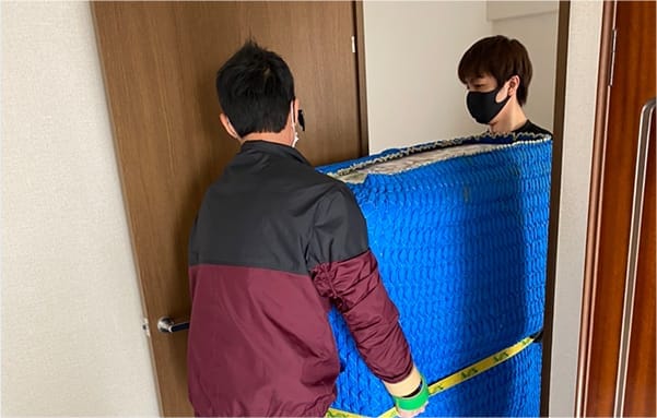 家や他の家財を傷つけないように、丁寧に運びます。必要な場合は毛布などで梱包します。経験豊富なスタッフ二人で、丁寧迅速に運び出していきます。あっという間に片付く様子にお客様は「こんな重いものを!」とても驚かれていました。