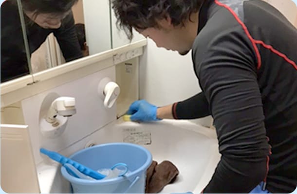 不用品を搬出したあとは掃き掃除を行って、細かいゴミなどを取り除きます。さらにおすすめなのはハウスクリーニング(別料金)。セカンドは掃除のプロです。水回りにこびりついた汚れや床に張りついた頑固な汚れを、専用の洗剤や道具で除去し、ゴミ屋敷の痕跡を可能な限りキレイにします。