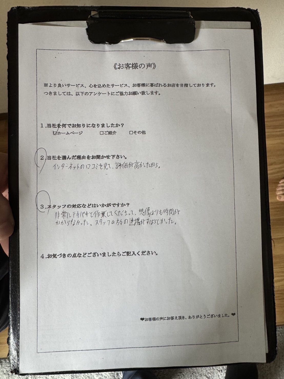 見積もり時の料金内容の説明が分かりやすく安心して任せられそうと感じてくださったことや、対応が丁寧だったことが決め手となり当社にご依頼をいただくことができました。